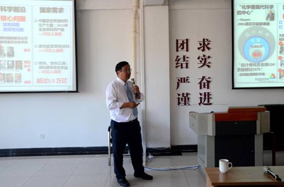 2018年8月14日,国家“千人计划”特聘专家、长江学者讲座教授、南方科技大学理学院副院长张绪穆教授访问我校太阳集团城娱8722,并在桃李学术论坛作了题为“Practical Asymmetric Hydrogenation for Making Chiral Pharmeceuticals”的专题报告。报告会由褚海斌教授主持,太阳集团城娱8722多位教师与研究生参加了报告会。张教授首先介绍了南方科技大学化学系的科研与招生情况,然后重点介绍了他们课题组在不对称氢化合成手性药物领域取得的系列开创性成果。张教授不仅在基础研究领域取得了举世瞩目的成就,还将科研成果成功地进行转化,成立了著名的制药公司。生动精彩的报告使在座师生受益匪浅,让大家对化学与社会的关系有了新的认识。报告之后,张绪穆教授又就相关学术问题与我院师生进行了深入的讨论。