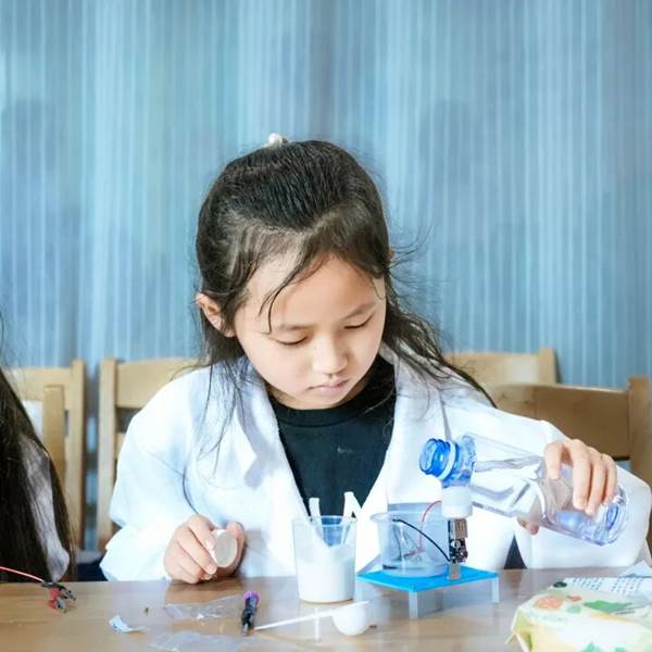 在本次活动中,我院师生充分发挥专业优势,承担了实验设计、原理讲解与实操指导等重要工作。教师们以扎实的学术基础和丰富的教学经验,将复杂的电化学、显色反应原理及荧光材料特性等知识,转化为中小学生易于理解的语言。学生志愿者们一对一、手把手地协助小朋友完成各类实验操作,展现了我院学子良好的实践能力与服务社会的责任感。